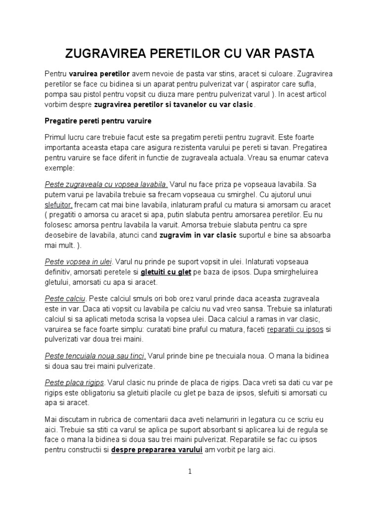 Pregatirea peretilor pentru zugravit cu lavabila. Daca este cazul se pregatesc peretii indepartand cu spaclul zugraveala veche care sta sa cada. Pe eticheta cutiei de vopsea ar trebui sa ai toate infomatiile necesare pentru pregatirea materialului. Am un apartament in care nu s a locuit timp de 28 de ani si este zugravit ca pe vremea lu raposatu cu mica. Pentru primul start va trebui sa diluezi vopseaua cu maximum 10 apa iar pentru al doilea strat cu 5.